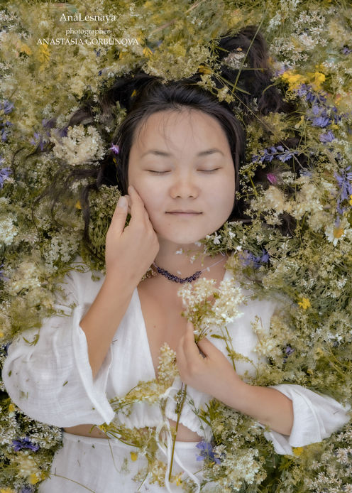 A beautiful woman in a white cotton dress is surrounded by flowers. The scent of honey, the freshness of the northern wind, and the emerald greenery of Montenegro fill the forest with magic. Each photograph conveys joy, tranquility, and harmony with nature, preserving naturalness, tenderness, and the enchanting glow of the moment.